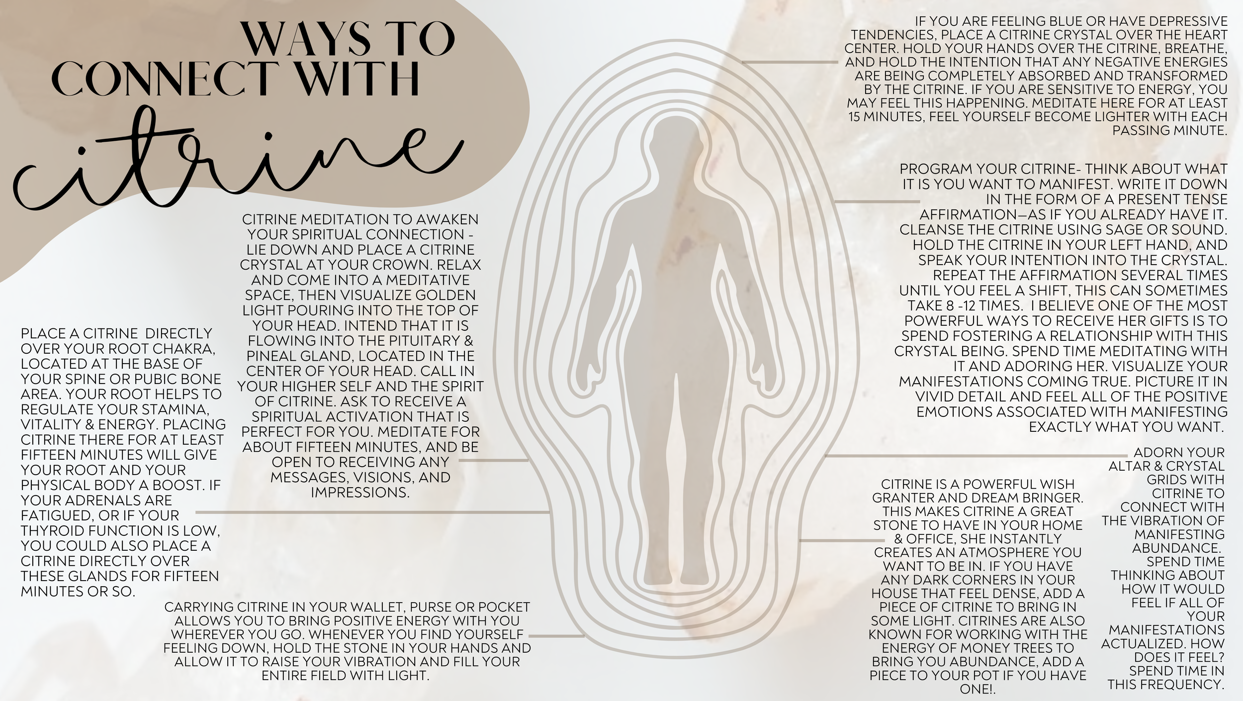 Opening to Kundalini Citrine Har Kundalini for Proseperity coming soon Create a manifestation bowl coming soon Feng Shui with Citrine Coming Soon Crystal Grids for Abundance coming soon Releasing Lack Tapping coming soon Abundance Breathwork coming soon