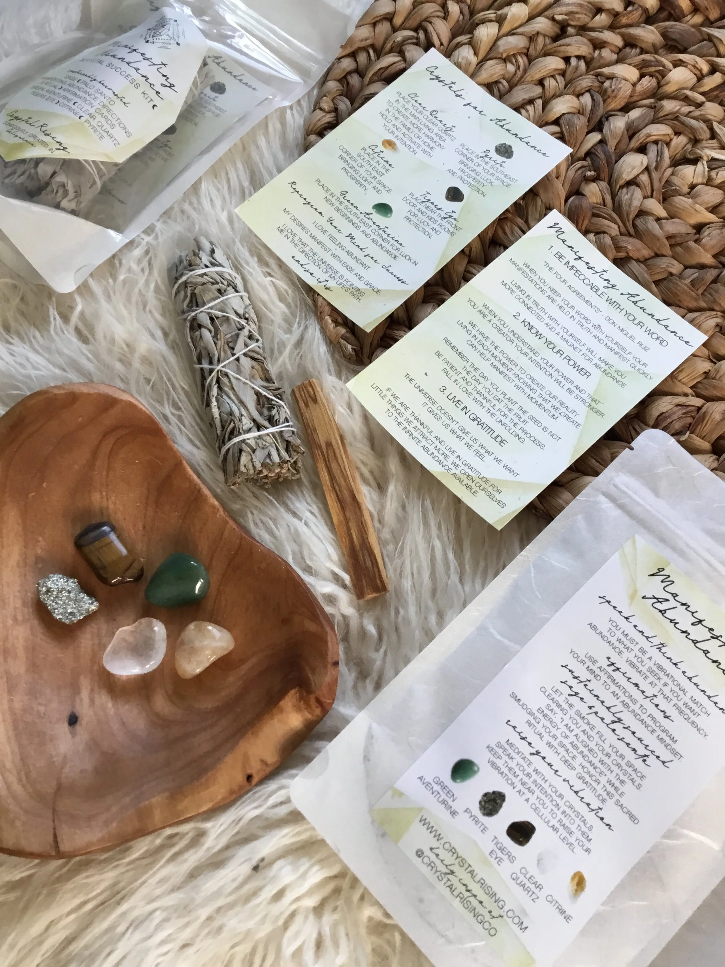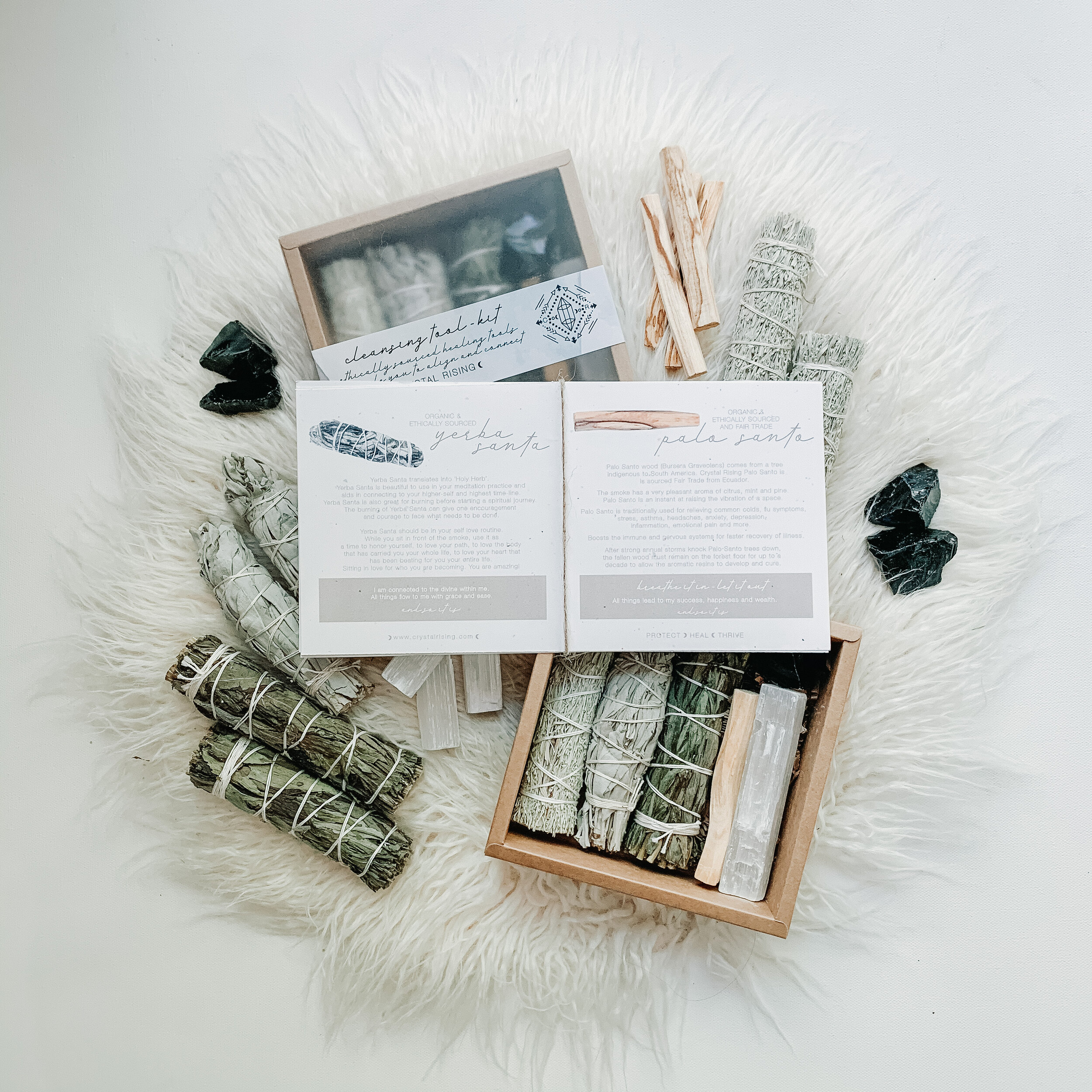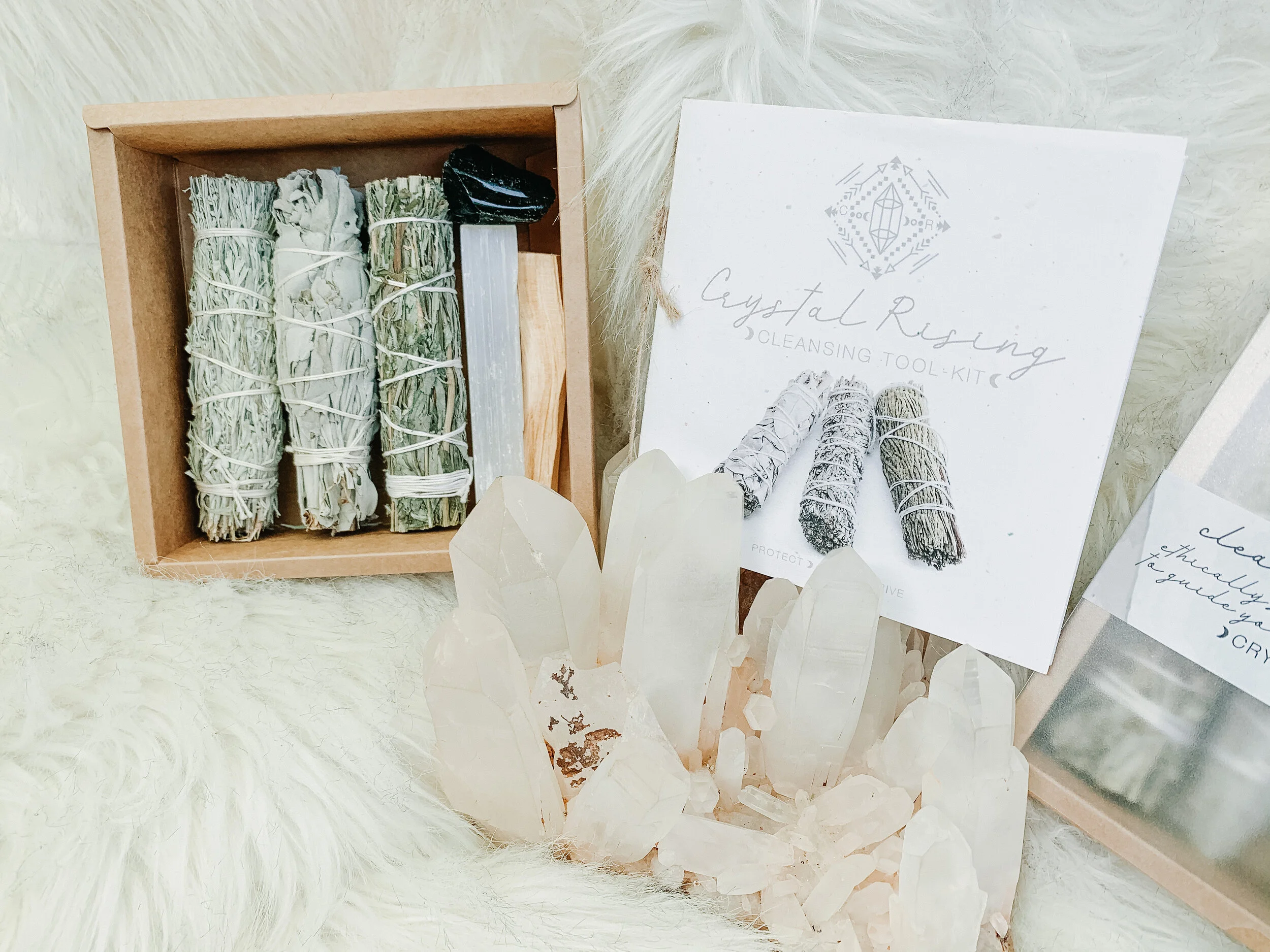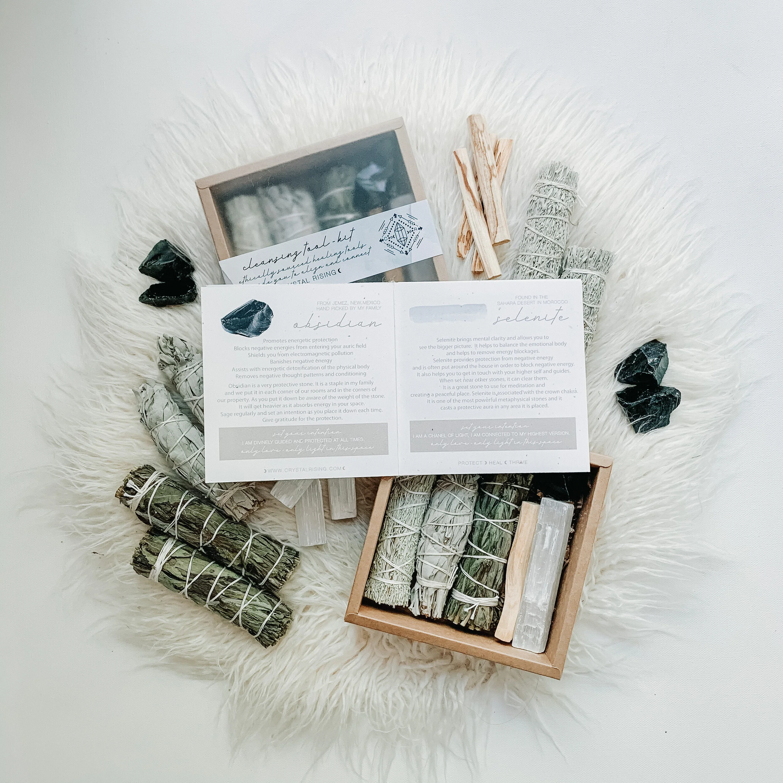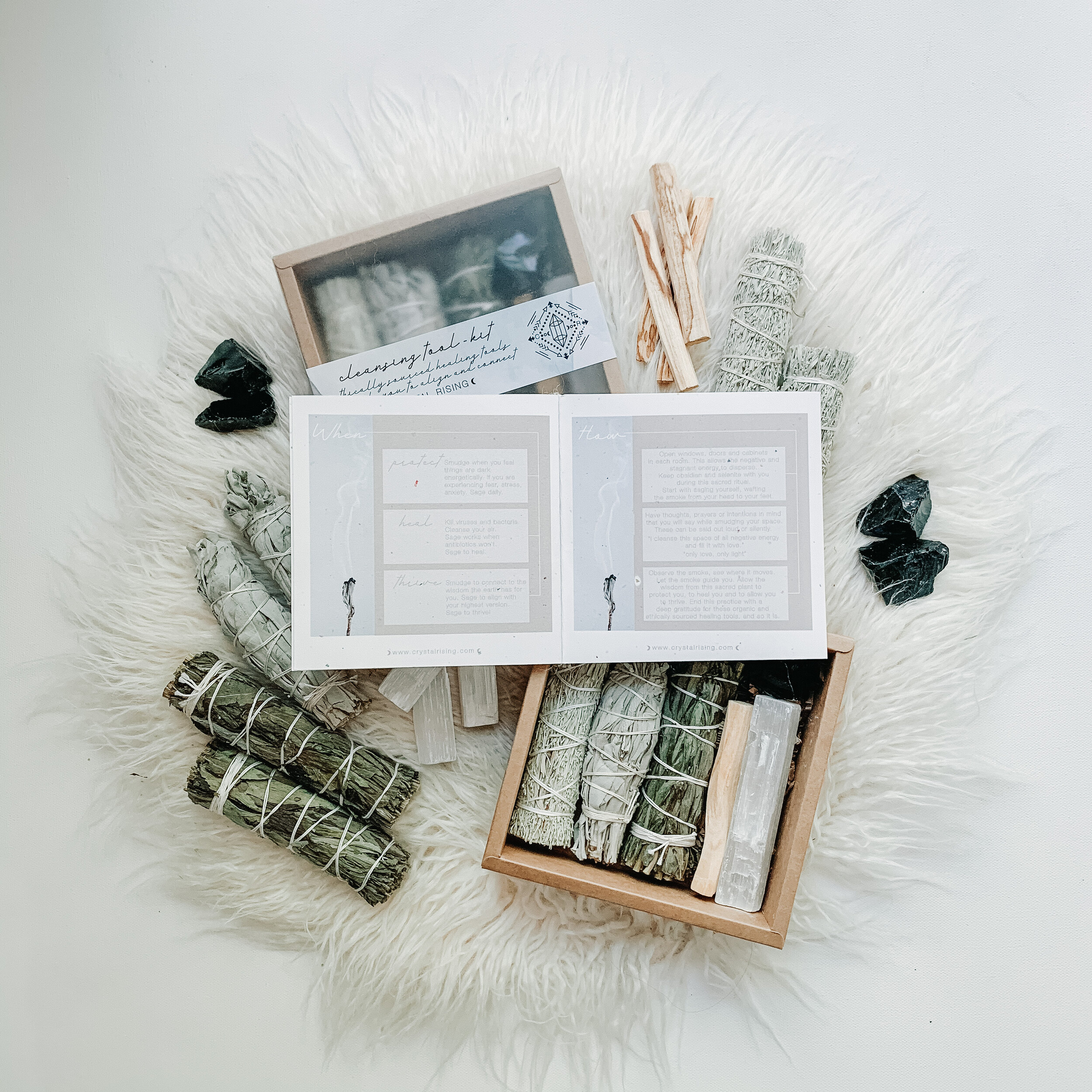 This comprehensive cleansing kit comes with everything you need to take your energy back! This kit will teach you when to use each piece, how and why! This beautiful kit comes with a detailed book that walks you through how to connect with each piece.