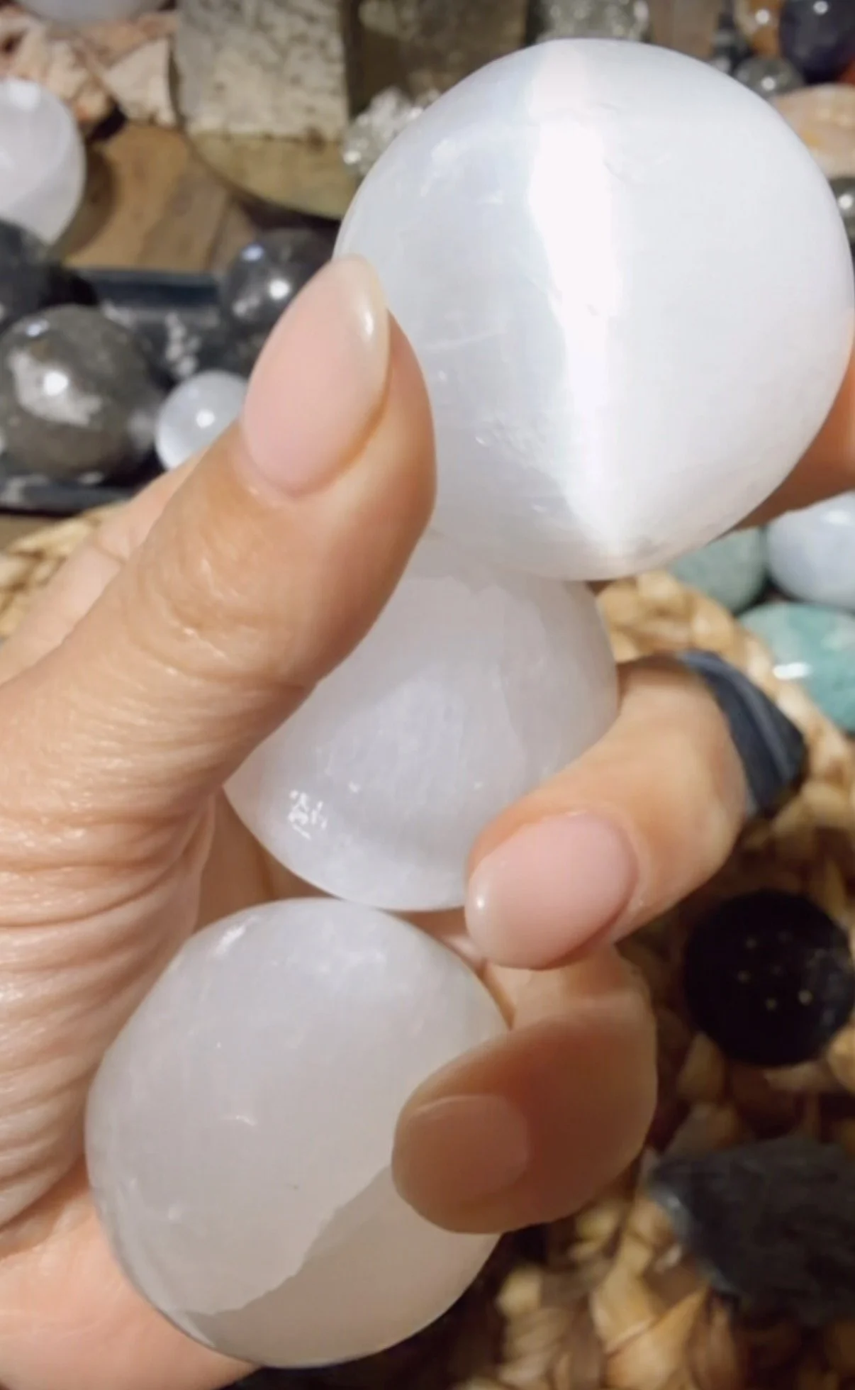 One of the highest vibrational crystals keep selenite with you at all times to blanket your aura and keep your vibration high!